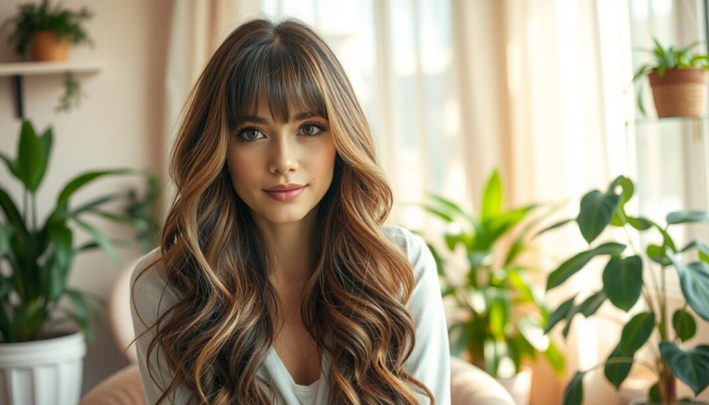Bei langen Haaren wirken Curtain Bangs besonders elegant und verleihen dem Gesamtbild eine weiche, romantische Ausstrahlung.