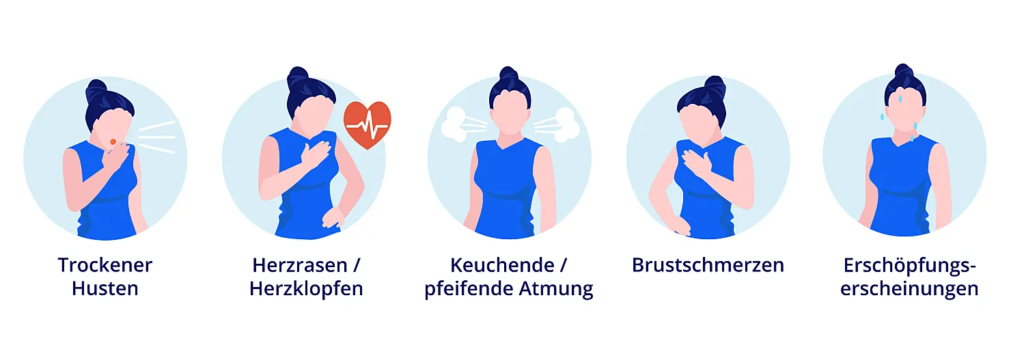 Da sich der Brustkorb nur minimal bewegt, entsteht oft der Eindruck, nicht richtig atmen zu können.